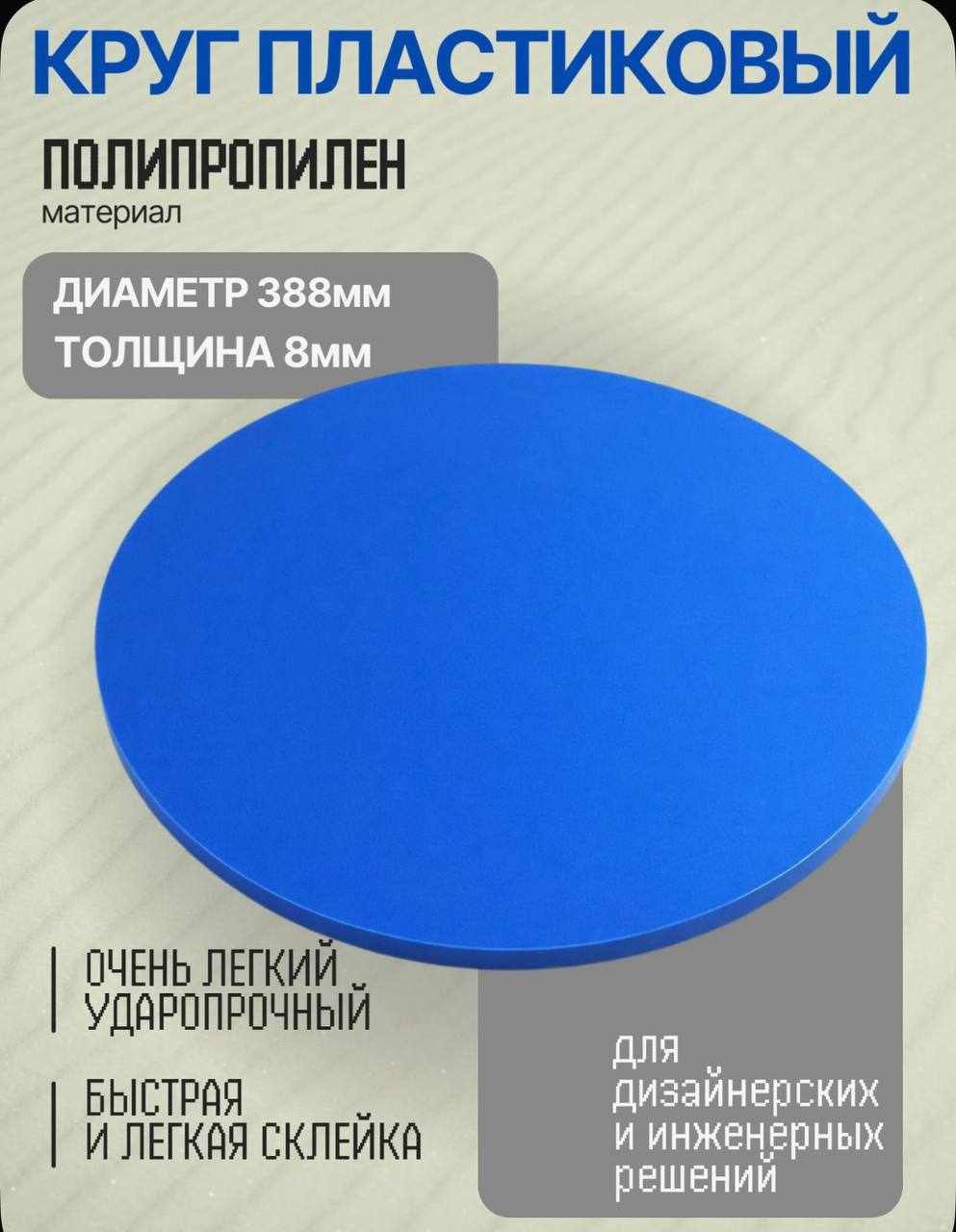 КРУГ ИЗ ПОЛИПРОПИЛЕНА СИНИЙ 388мм, толщина 8мм