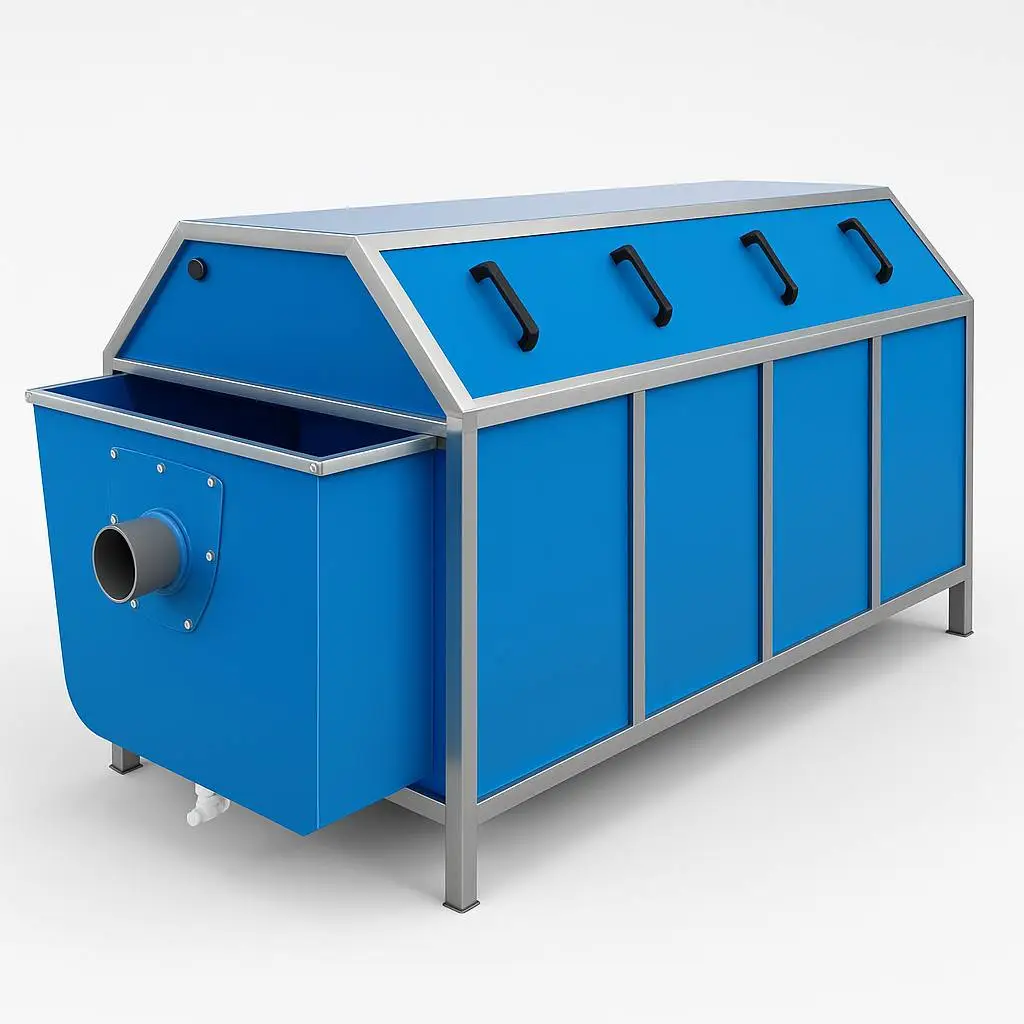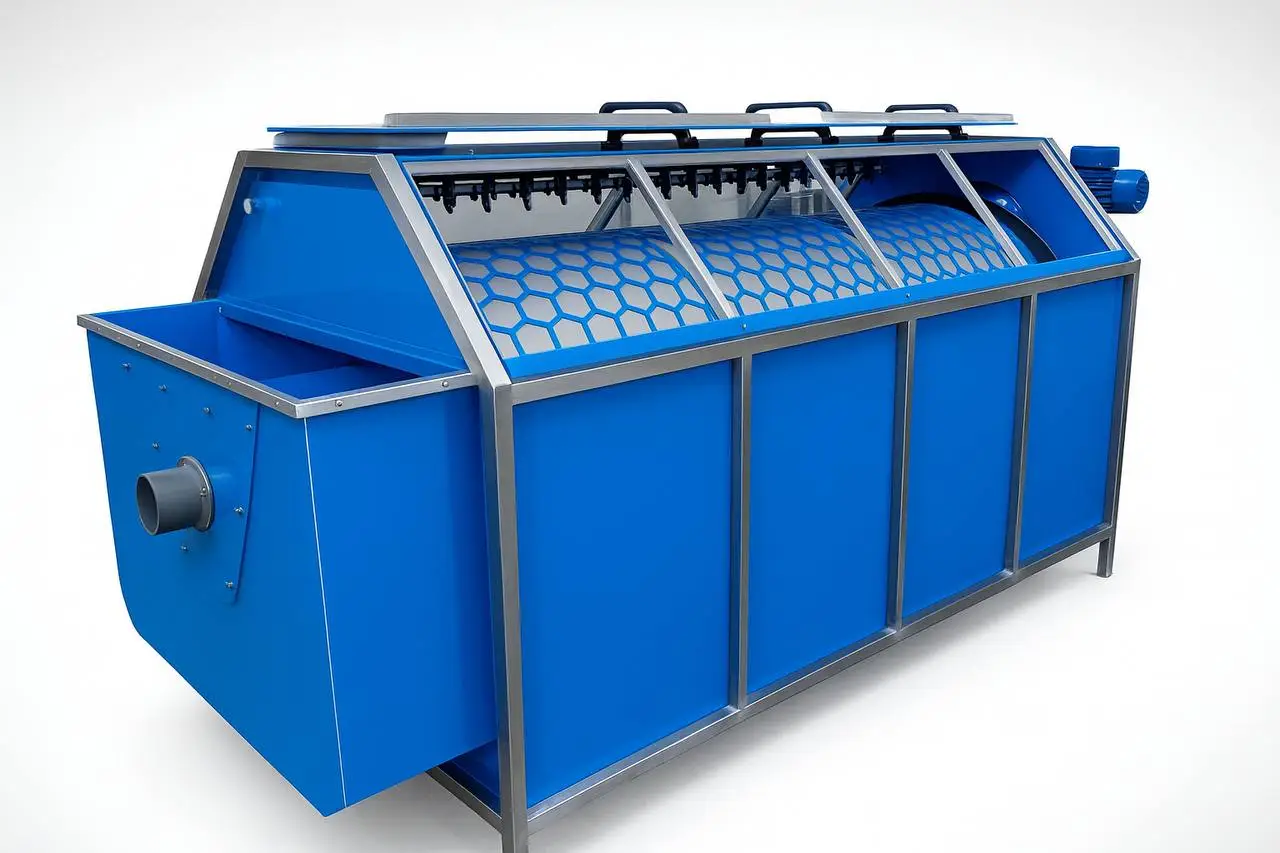 Механический барабанный фильтр предназначен для первичной очистки воды в установках замкнутого водоснабжения (УЗВ). Фильтр удаляет из потока взвешенные частицы, остатки корма и продукты жизнедеятельности, предотвращая их попадание в биофильтр и снижая нагрузку на систему. Очистка происходит автоматически: вода проходит через вращающийся фильтрующий барабан. Задержанные частицы смываются системой форсунок и выводятся в дренаж. Оборудование работает круглосуточно, без остановки хозяйства.