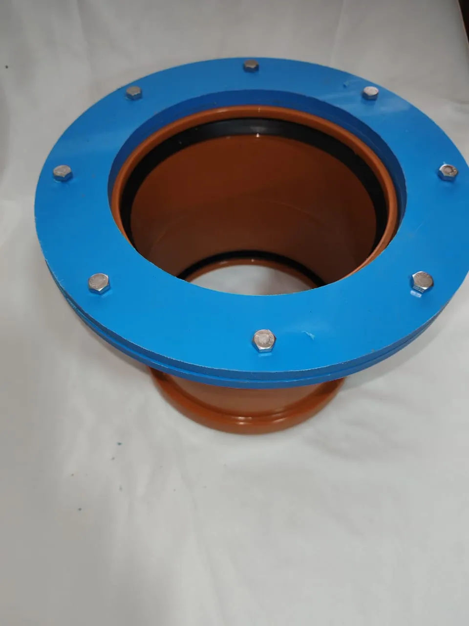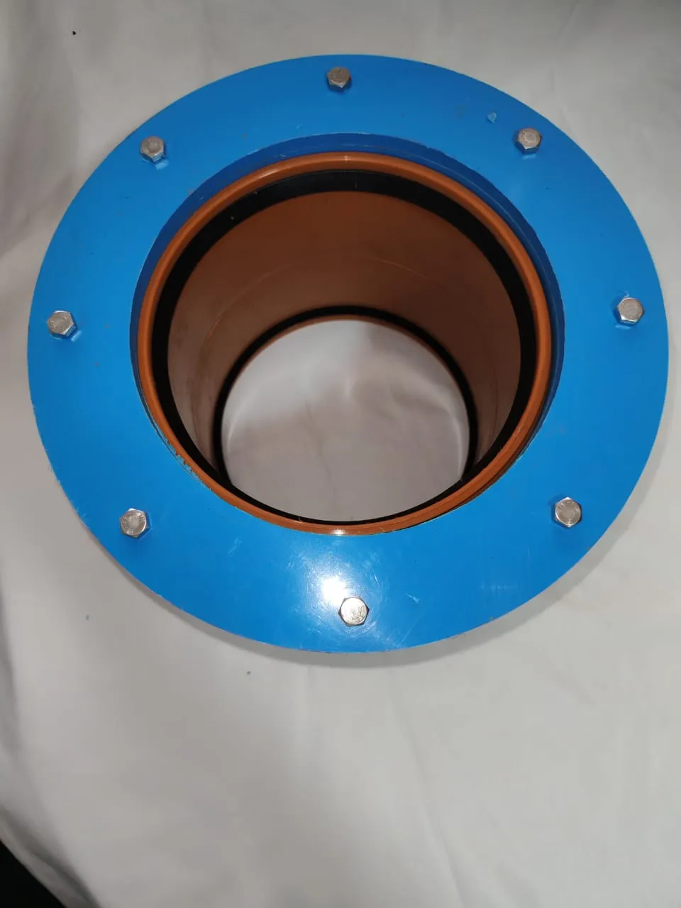 Переход фланцевый под трубу 160мм,  нержавеющие болты 6х35, диаметр фланца 255мм, внутренний проход под канализационную трубу 160мм.