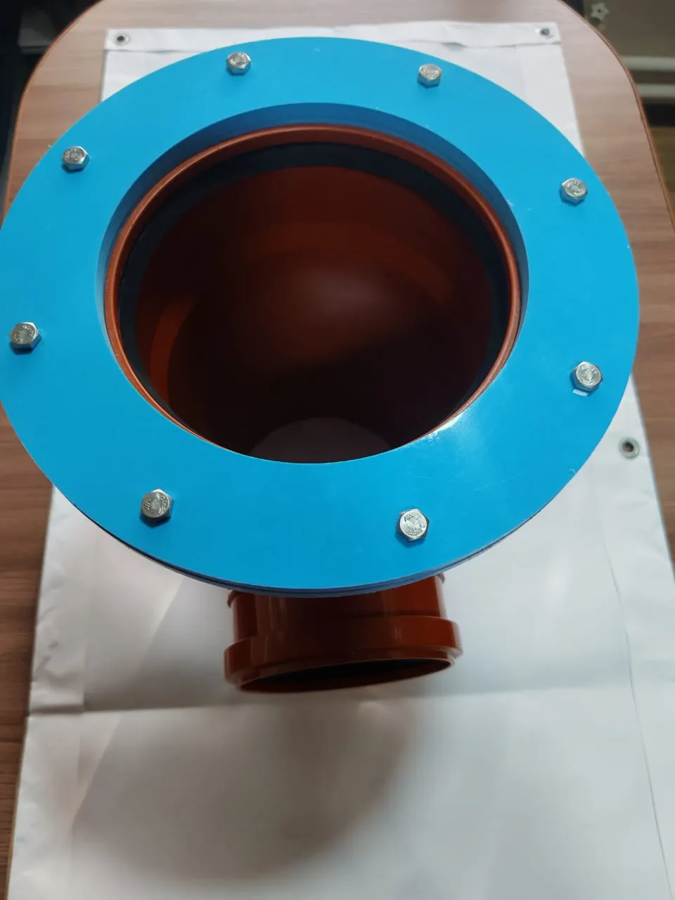 Тройник предназначен для обустройства канализационных систем из полипропилена. Изделие оснащено прочным фланцевым соединением с болтами, что обеспечивает надежную фиксацию и герметичность стыка.