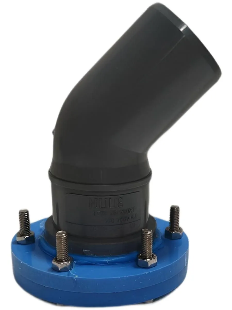 Фланцевое соединение предназначено для монтажа канализационных труб под углом 45°. Изготовлено из прочного полипропилена, устойчивого к бытовым сточным водам и коррозии. Болтовое крепление обеспечивает надежную герметичность и долговечность конструкции.